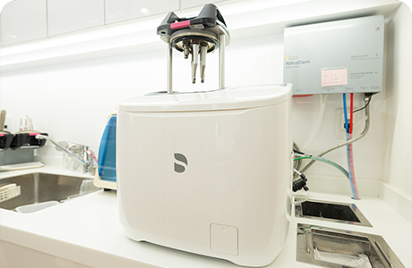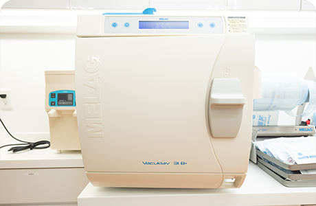 歯科医療の先進地とされるヨーロッパでは、性能により滅菌器がクラス分けされています。N、S、Bの3クラスのうち、当院では、最も厳しい基準をクリアしたクラス Bの滅菌器を導入しています。凹凸のある器具までしっかりと滅菌できる性能を持ち、医科の現場でも広く取り入れられています。