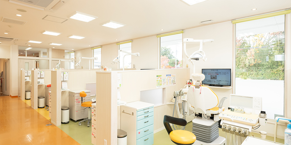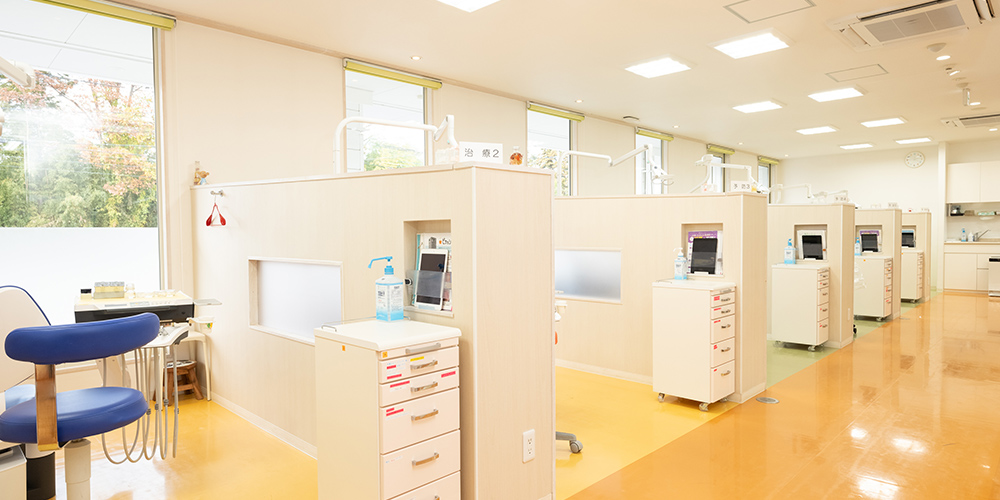 当院は、「しのはら公園」建設予定地の隣にあり、19台分の駐車場をご用意しているため、快適にご来院いただける立地です。院内は車いすやベビーカーのまま移動できるバリアフリー設計で、待ち時間の少ない診療を心がけています。また、女性歯科医師が在籍し、楽しく遊べるキッズスペースの設置など、小さなお子さんも不安なく通える環境づくりにも取り組んでいます。