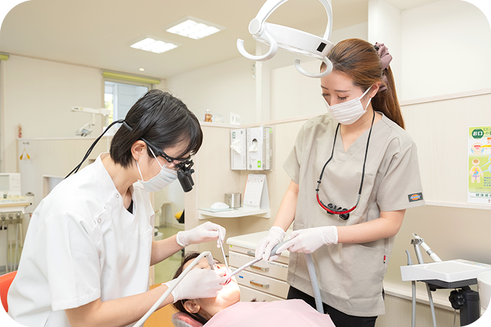 妊娠中はホルモンバランスの変化やつわりの影響で、むし歯や歯ぐきの腫れ・出血が起こりやすくなります。当院では、妊娠中の歯周病治療にも精通した歯科医師が、お身体の負担に配慮しながらやさしく丁寧に対応します。お口の状態に合わせた予防ケアもご案内しますので、気になることがあれば、お気軽にご相談ください。