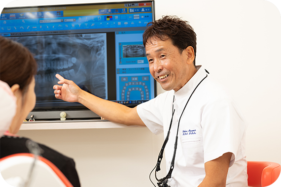ご来院いただき、精密検査と診断の結果をご説明します。作成した治療計画についても詳しくご案内し、治療の流れや期間、注意事項などをわかりやすくお伝えします。不明な点があれば、どうぞ遠慮なくお尋ねください。