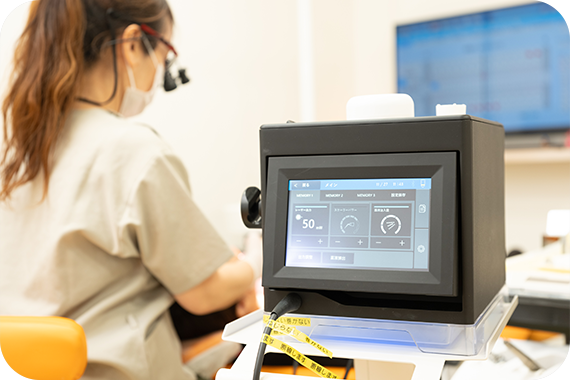 歯周ポケットのすみずみまで殺菌し、超音波振動を使って歯石やバイオフィルムを取り除きます。治療前に麻酔を行うため、処置中の痛みは感じにくいです。1本1本を丁寧に確認し、安心して治療を受けていただける環境づくりに努めています。
