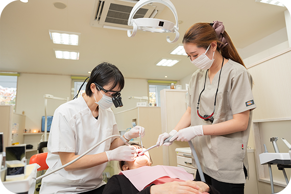 当院は、お口のトラブルを未然に防ぐために継続的な管理を行う「定期管理型予防歯科医院」です。予防ケアの中心となる歯科衛生士は、歯周病や予防歯科に関する専門的な知識を深めるため、院内勉強会や外部セミナーに積極的に参加しています。スタッフ全員が、患者さんのお口の健康を守りたいという想いを大切にしながら、日々の診療に取り組んでいます。