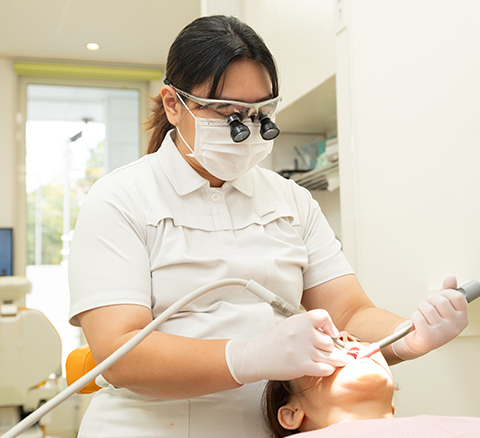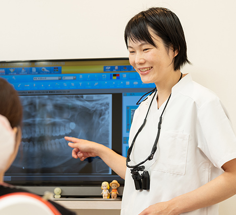 当院では、患者さんが不安を感じることなく治療を受けられる環境づくりを何よりも大切にしています。「歯医者は痛い」「歯を削る音を聞くと痛みを思い出す」という患者さんのため、極力痛みの少ない治療を提供しており、患者さんと密にコミュニケーションをとりながら、悩みを引き出していけるよう尽力しています。